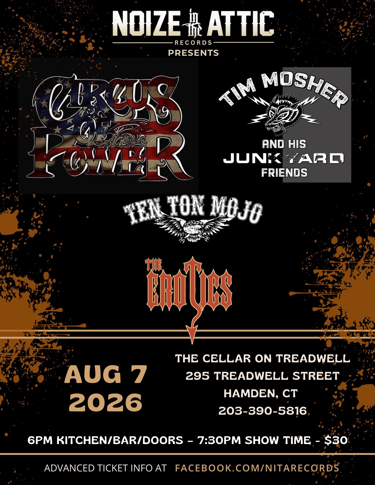 NOIZE IN THE ATTIC RECORDS PRESENTS : Circus of Power and Tim Mosher and His Junkyard Friends LIVE IN CONCERT!! With special guests Ten Ton Mojo and The Erotics